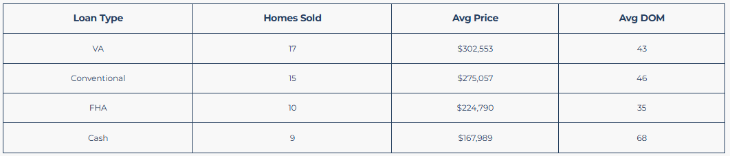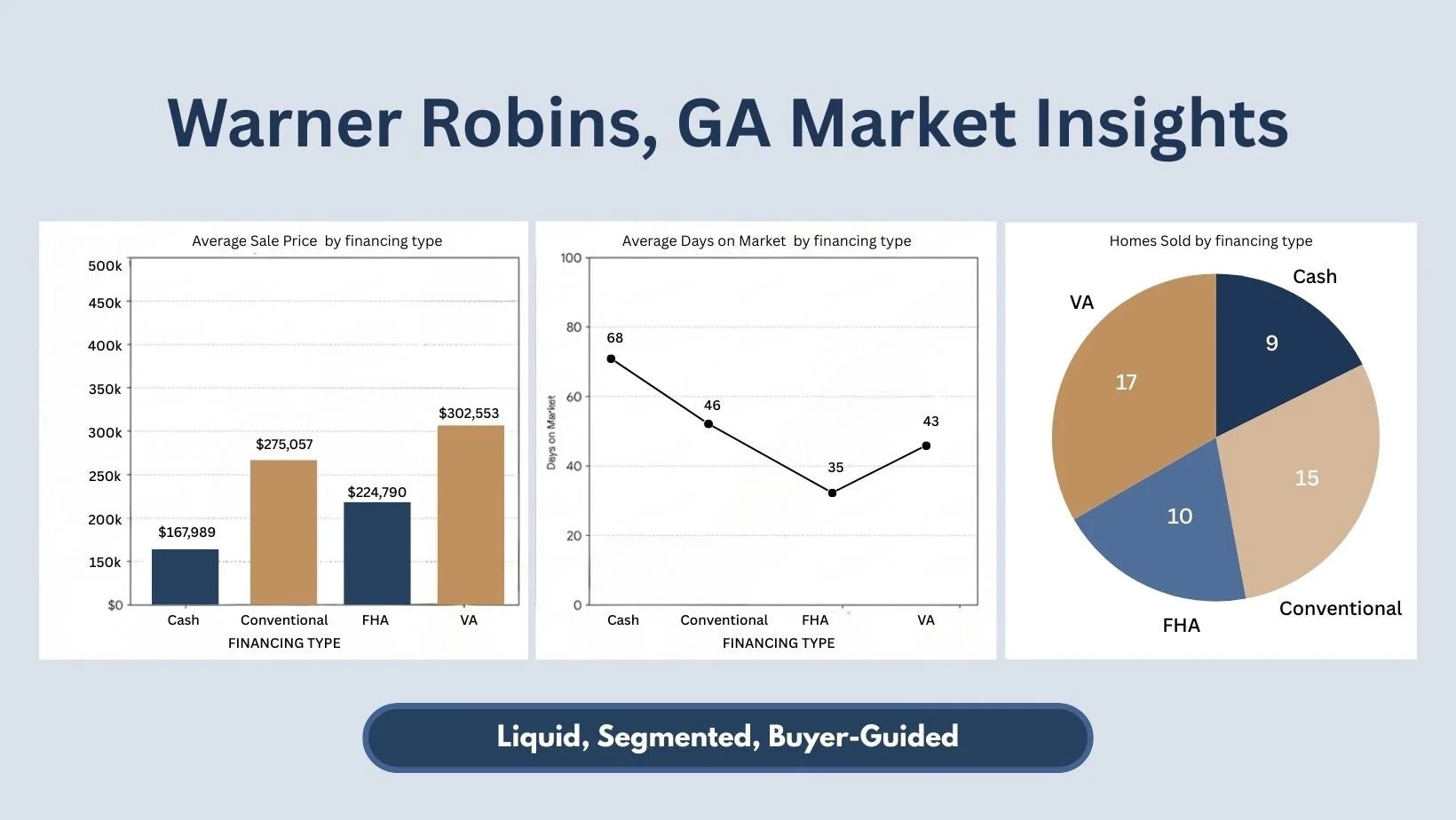 - VA and conventional loans anchor the market, reflecting Robins Air Force Base influence and stable employment