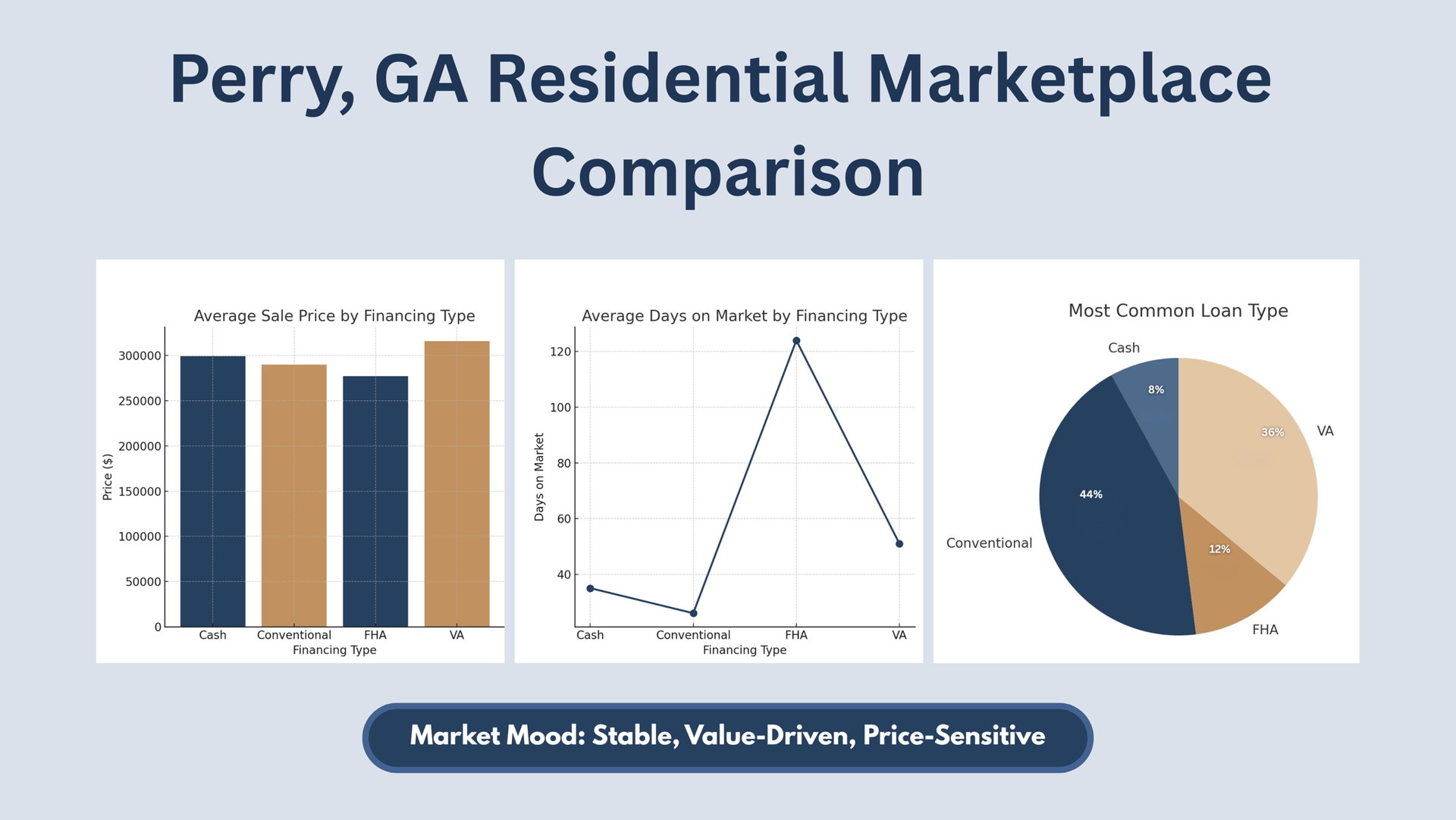 Conventional and VA loans drove the Perry GA real estate market — consistent with Perry housing trends.