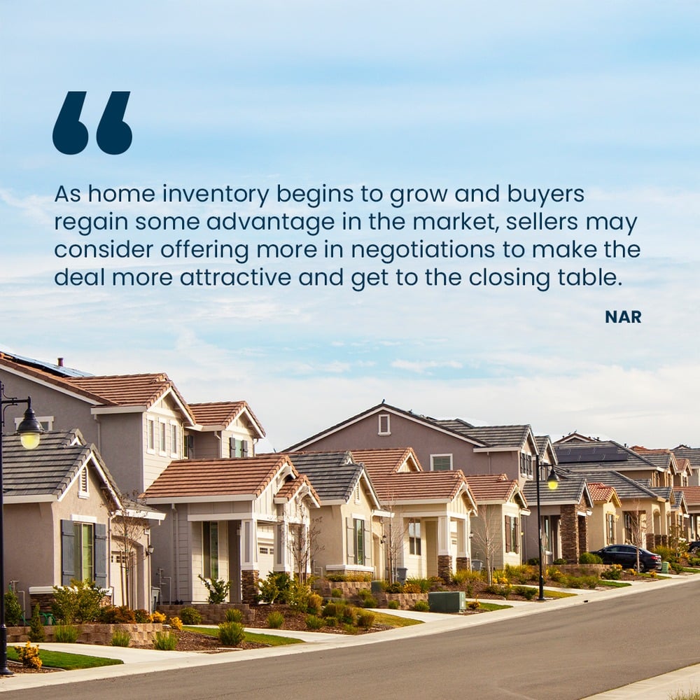 “As home inventory begins to grow and buyers regain some advantage in the market, sellers may consider offering more in negotiations to make the deal more attractive and get to the closing table.”