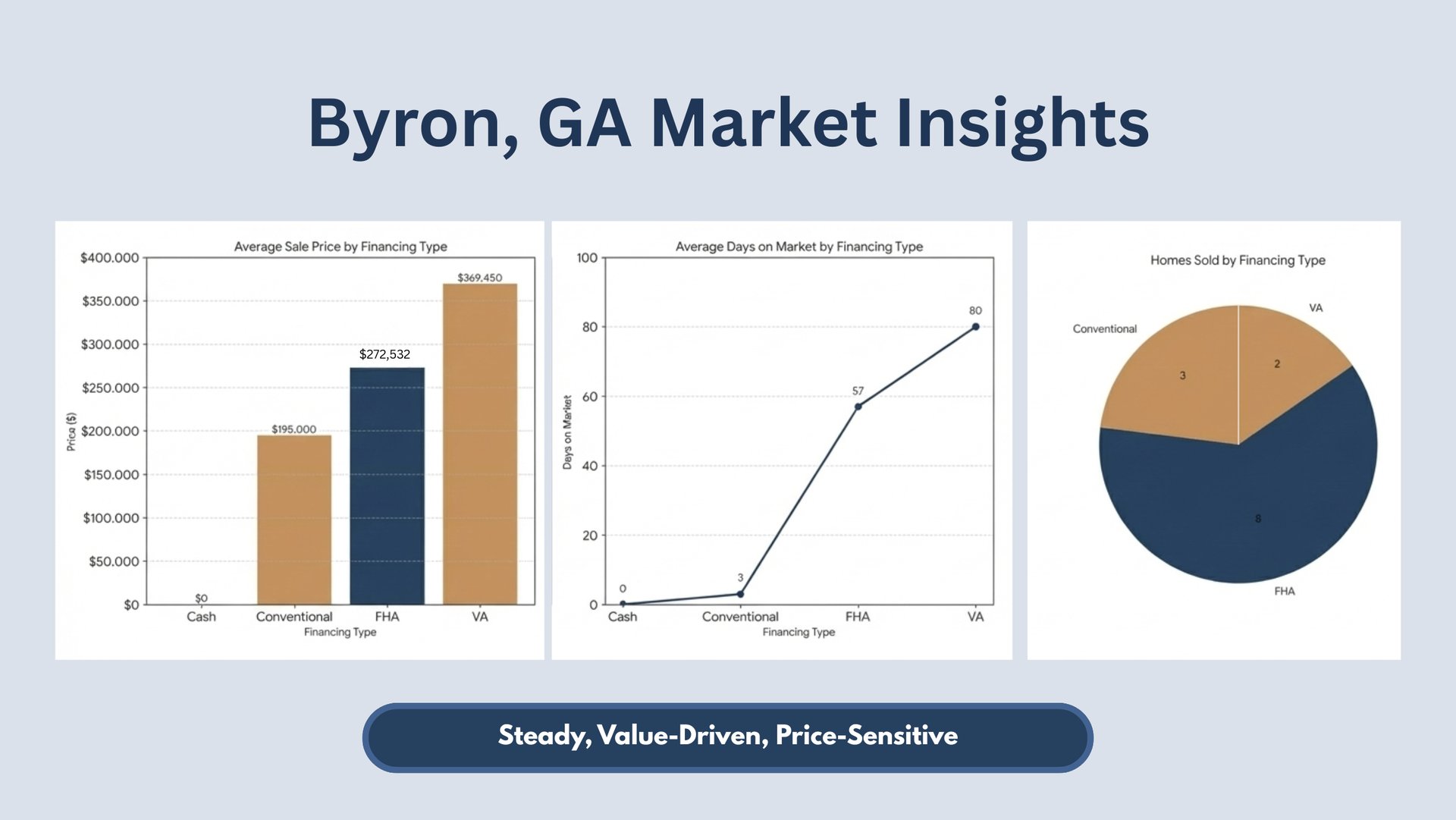 - FHA dominated → Byron, GA real estate attracts affordability-focused buyers who need move-in-ready homes.