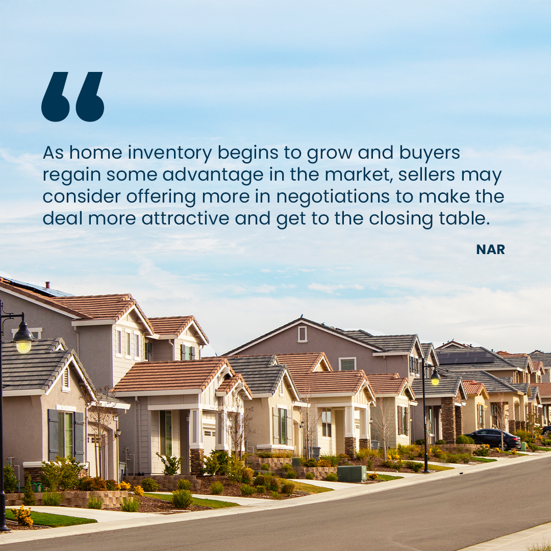 “As home inventory begins to grow and buyers regain some advantage in the market, sellers may consider offering more in negotiations to make the deal more attractive and get to the closing table.”